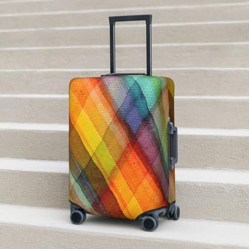 HOT ! Abstract Watercolors Tartan Print Luggage Cover For Suitcase,Washable Elastic Travel Suitcase Protector With Zipper Closure And Bottom Buckle – Fits 18-32" Luggage-Large