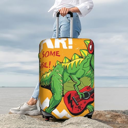HOT ! Cool Dinosaur Playing Guitar Print Luggage Cover For Suitcase,Washable Elastic Travel Suitcase Protector With Zipper Closure And Bottom Buckle – Fits 18-32" Luggage-X-Large
