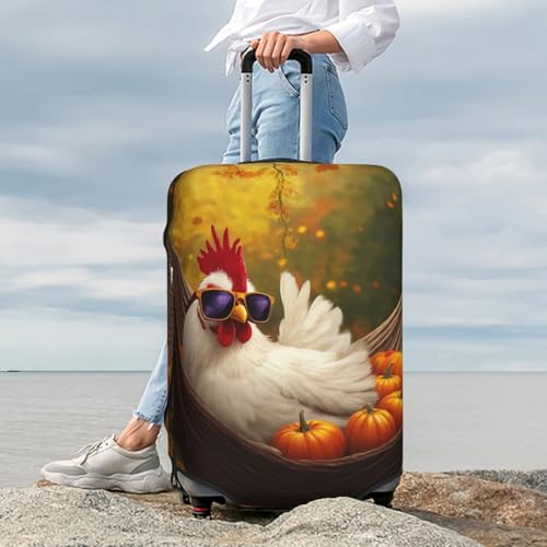 HOT ! Autumn Rooster Pumpkin Hammock Luggage Cover Elastic Washable Protector Anti-Scratch Travel Suitcase Covers With Concealed Zipper For 18-32 Inch Luggage Medium