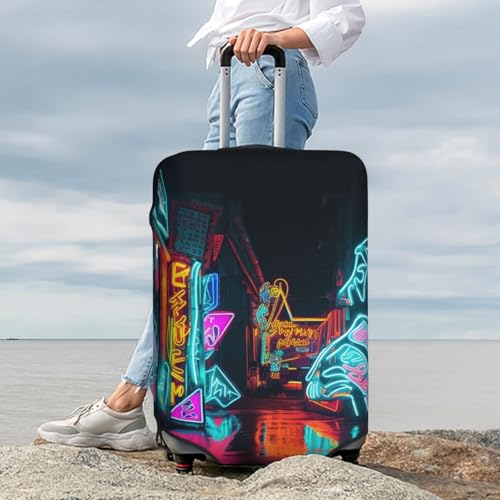 HOT ! Travel Luggage Cover Neon Art Suitcase Protector Elastic Washable Stretch Suitcase Protector Anti-Scratch Travel Suitcase Cover Fit 18-32 Inch Luggage