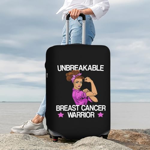 Unbreakable Breast Cancer Warrior Travel Luggage Cover Suitcase Protector Fits 26-28 Inch Case(Black,L) 1