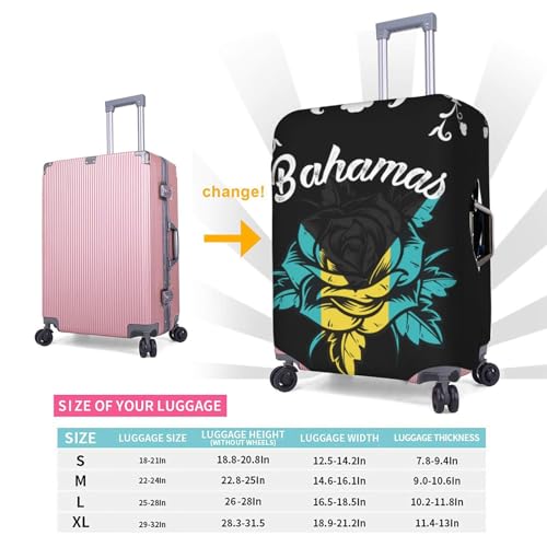 HOT ! Vintage Rose Bahamas Bahamian Flag Universal Stretch Suitcase Cover Carry On Luggage Sleeve Anti Scratch Travel Baggage Protector for Unisex Women Travel Small