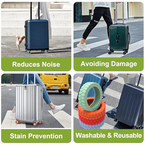 • Luggage wheel covers made of high quality silicone material, soft and stretchy, effectively reduce noise and vibration, protect wheels from scratches, scuffs and damage caused by sharp objects.