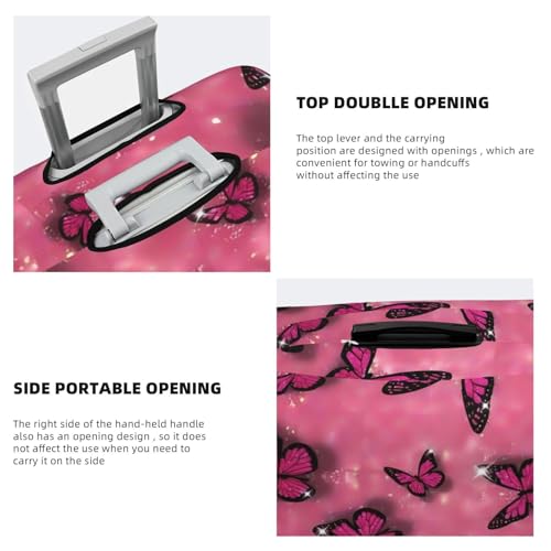 Glittering Pink Butterfly Print Luggage Cover Elasticated Suitcase Covers TSA Approved Stylish Scratch Washable Resistant Case Protector for Kids and Adults 5