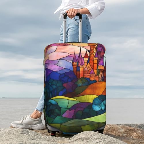 Stained Glass Medieval Castle Elastic Travel Luggage Covers Dustproof Scratch-Resistant Suitcase Protector Fit 22-24 Inch 3