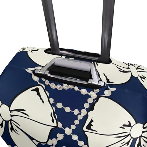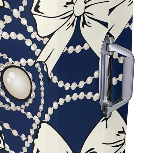 Joisal White Bows Pearls Navy Blue Luggage Cover for Suitcase Protector Trip Elastic Travel Accessories for Women Prints, L, Fits 26-28 Inch Case 7