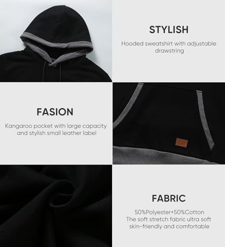 • Features: Mens solid color long sleeve pullover hooded, a kangaroo pocket have a three-dimensional leather label design, sweatshirt with adjustable drawstrings, ribbed hem and cuffs to lock in warmth.