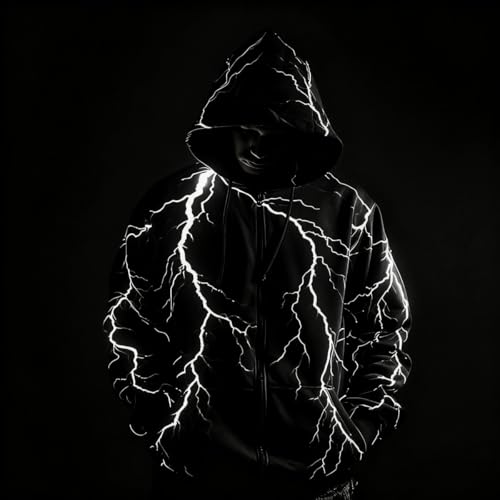 Autumn and winter new lightning pattern zipper hoodie men's fashion long sleeve 3D printed zipper sweater 1
