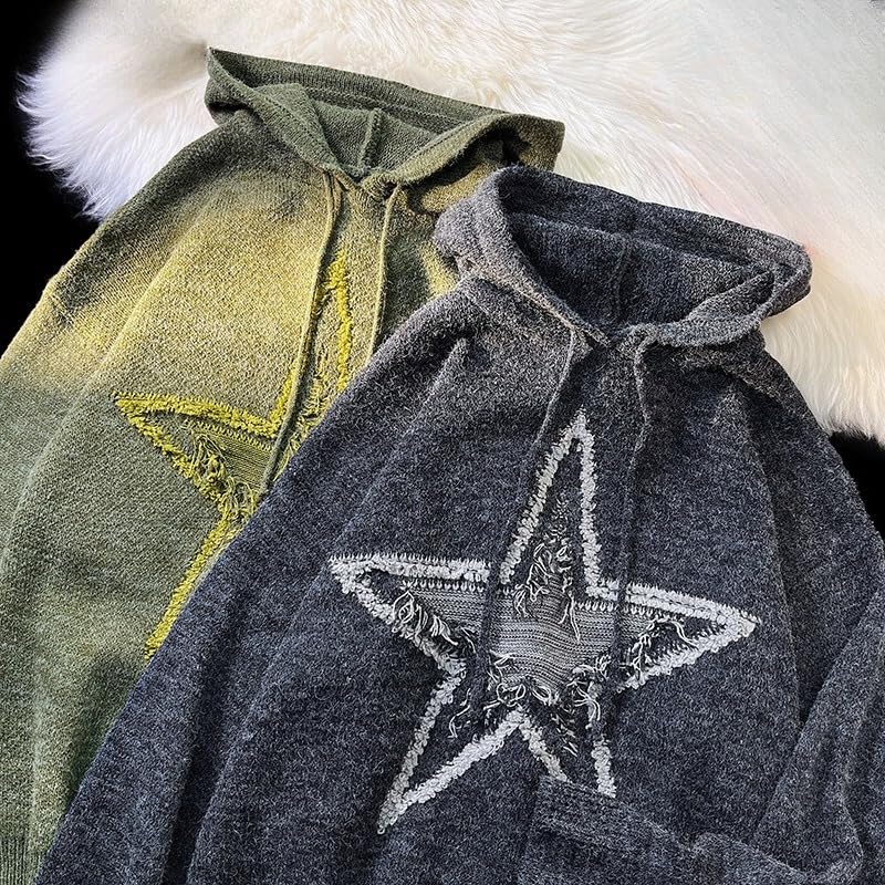 More information about Pullover Sweaters for Men Y2k Oversized Long Sleeve Knit Goth Star Graphic Sweater Hoodie Streetwear Punk Clothes