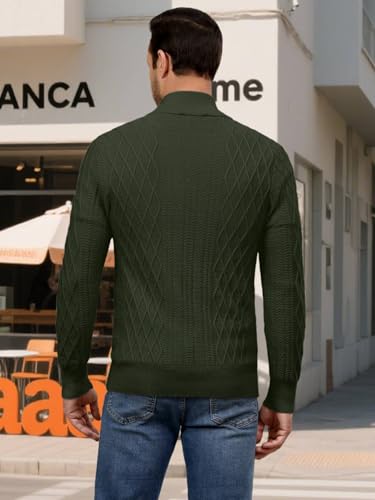 Auxo Men's Cable Knit Pullover Sweaters Casual Long Sleeve Stand Collar Quarter Button Knitted Sweater 5