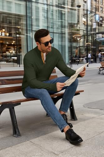 Auxo Men's Cable Knit Pullover Sweaters Casual Long Sleeve Stand Collar Quarter Button Knitted Sweater 1