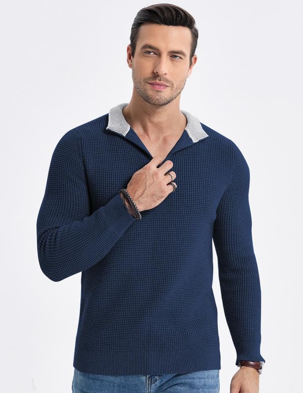 Men's Quarter Zip Up Pullover Slim Fit Mock Neck Long Sleeve Sweater Casual Knit Polo Sweaters 1