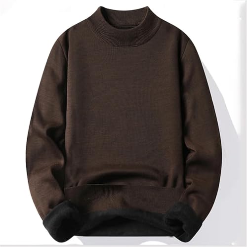 HOT ! Knitted Sweater Mens Half High Collar Solid Color Plush Warm Knitted Lining Top Casual Versatile Comfortable