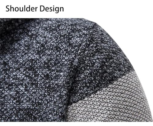 Vsadsau Men Hooded Knitted Cardigan Sweater Fall Winter Thickened Jumpers Casual Color Block Sweater 6