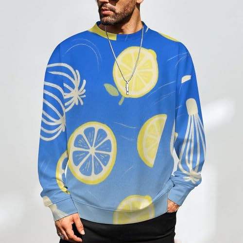 MoBlinko Summer Lemon Fruit Mens Sweater Crewneck Sweater S Lightweight Sweaters for Men Long Sleeve Pullover 4