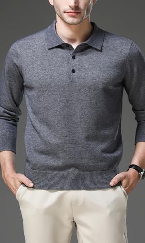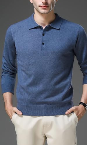 More information about Men’S Wool Solid Turn-Down Collar Long Sleeve Stretch Knitted Pullover Sweater for Business Casual Wear