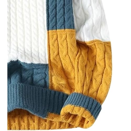 HOT ! Men's Cable Knit Patchwork Pullover Lightweight Casual Knitted Pullover Chunky Winter Twisted Thermal Sweaters