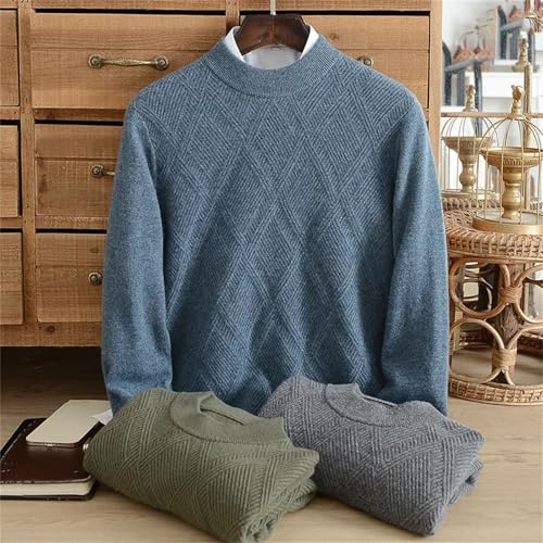 Winter Cashmere Sweater Men's 100% Cashmere Half Turtleneck Knitted Diamond-Shaped Casual Thin Bottoming Warm Sweater 5