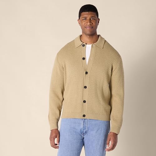 HOT ! Amazon Essentials Men's Relaxed-Fit Collared Cardigan Sweater