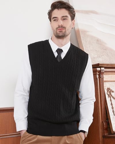 HOT ! Kallspin Men’s Wool Blended Cable Knit Sweater Vest V Neck Relaxed Fit Sleeveless Pullovers