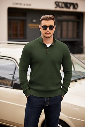 HOT ! COOFANDY Men's Quarter Button Sweater Mock Neck Textured Knitted Pullover