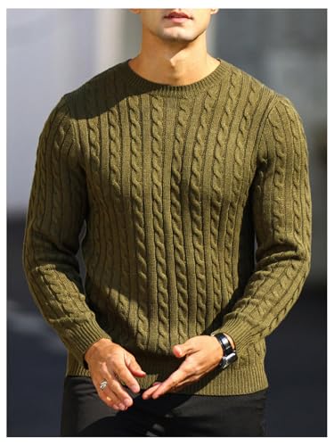 More information about Men's Cable Knit Round Neck Sweaters Long Sleeve Slim Fit Pullover Tops Knitwear