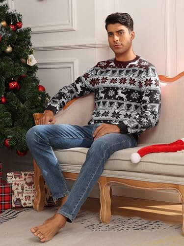 JouYooQ Yoetaun Mens Ugly Christmas Sweaters Long Sleeve Round Neck Xmas Pullovers for Party Knitted Soft Black 7