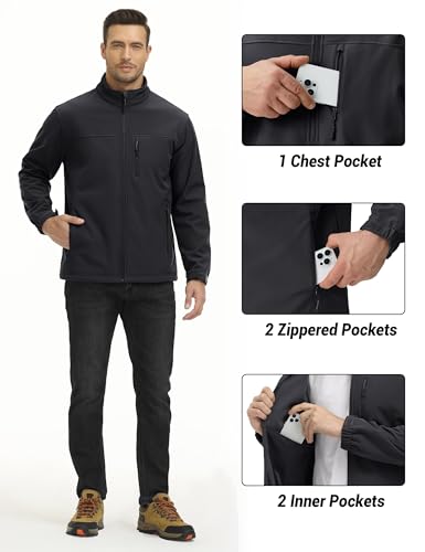 TACVASEN Men's Lightweight Softshell Jacket Fleece Lined Waterproof Tactical Rain Zip Up Winter Coat Windbreaker Casual 3