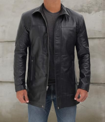 • Timeless Design: Our leather coat features a shirt-style collar, a button front with integrated zipper, and mid-thigh length silhouette for a structured yet comfortable look