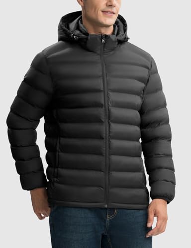 HOT ! Rdruko Men's Puffer Jacket with Detachable Hood Lightweight Water Resistant Insulated Winter Puffy Coat
