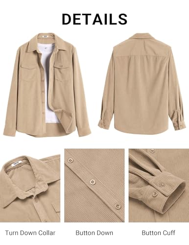 More information about COOFANDY Men's Corduroy Button Down Shirts Jackets Casual Long Sleeve Shacket Lightweight Overshirts with Flap Pockets