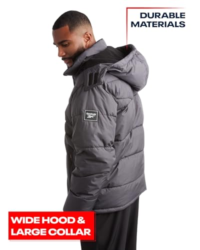 HOT ! Reebok Mens Winter Jacket - Thick Heavyweight Ski Winter Coat - Warm Insulated Quilted Hooded Puffer Coat for Men