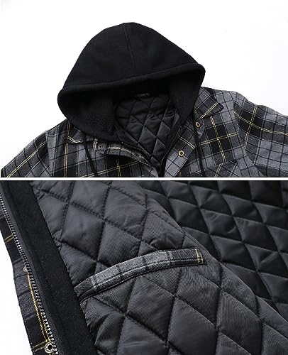 More information about ZENTHACE Men's Thicken Plaid Hooded Flannel Shirt Jacket with Quilted Lined,Zipper&Snap