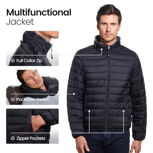 Weatherproof Men's Puffer Jacket, Lightweight Wind Resistant Alternative Down Jacket with Packable Travel Neck Pillow (S-3XL) 5