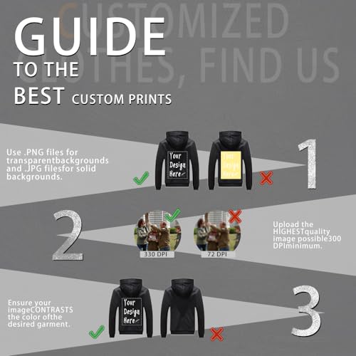 • Printing: You Can Print with Pictures Texts or Logo on two Sides of the Jacket. You can print paintings, text, family members, cats, dogs, or anything else that is meaningful to you. Please upload high-quality photos in PNG format to ensure that the actual colors closely match the images.