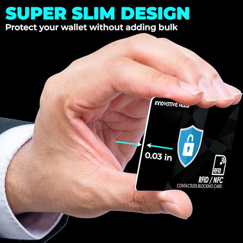 • Everyday Use: Made from durable PVC, each RFID blocking card measures just 0.03 inches thick. Slim design ensures it fits nicely alongside your existing cards without adding bulk to your wallet or purse