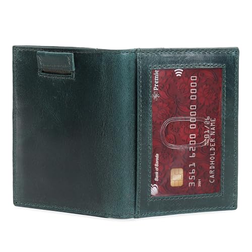 HOT ! Bbelleco Genuine Leather Slim Wallet | RFID Blocking Skinny Minimal Thin Front Pocket Wallet Sleeve Card Holder for Men | 10 Card Slots, 1 ID Window, 3Card Puller, 2 Hidden Pocket (Green)