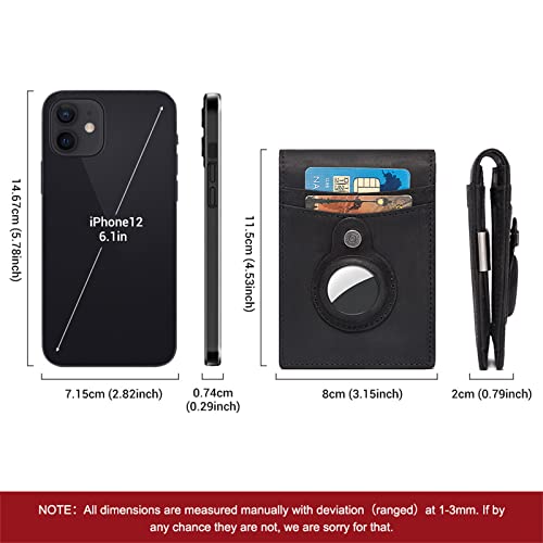 AirTag Wallet for Men,Minimalist Genuine Leather Wallet For Card Holder And AirTag Holder,Slim Bifold Front Pocket Wallet With Money Clip,Gift For Men (Coffee) 6
