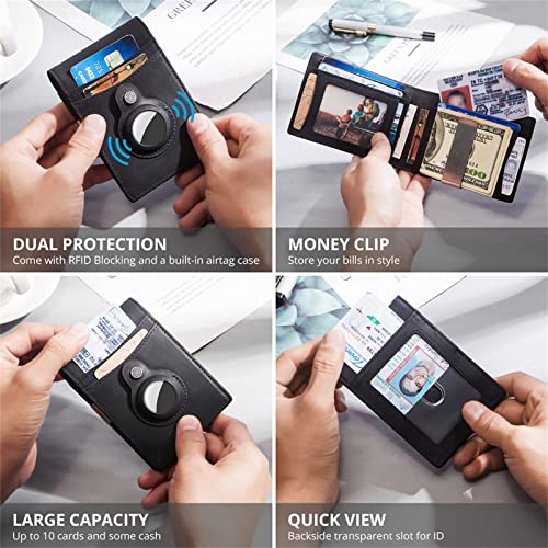 • ✅Perfect for Your Busy Lifestyle: Designed for convenience, our airtag wallet includes a quick-access ID window and two spacious bill pockets. With room for 7-10 cards, cash, and photos, this wallet keeps your essentials organized and easily accessible, perfect for your on-the-go lifestyle.