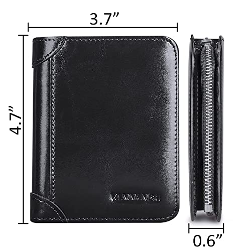 HOT ! VANNANBA Genuine Leather Wallets for Men with Zipper Coin Pouch,RFID Blocking Bifold Front Poacket Multi Card Holder Wallet(Black)