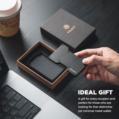 HOT ! VULKIT Men's Metal Wallet with Money Clip Slim Credit Card Holder, Minimalist Business Card Case Front Pocket Wallet for Men(Black)
