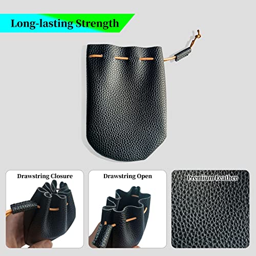 Faux Leather Drawstring Pouch, Premium Coin Pouch for Men, coin holder for purse, Change Holder for Car as coin purses, coin wallet, dice bags, key wallet Size 5.9" x 4.3" (Black) 4