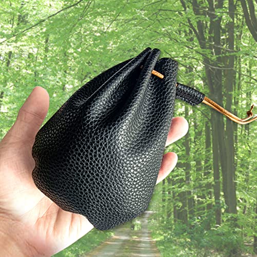 Faux Leather Drawstring Pouch, Premium Coin Pouch for Men, coin holder for purse, Change Holder for Car as coin purses, coin wallet, dice bags, key wallet Size 5.9" x 4.3" (Black) 5