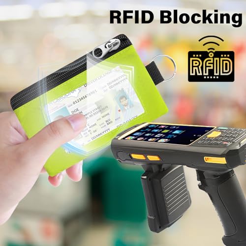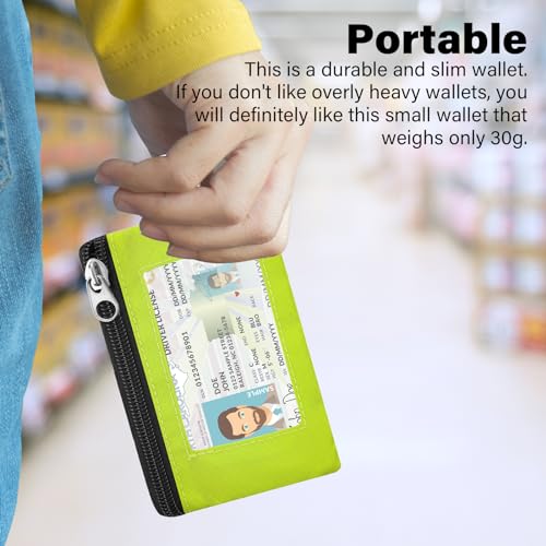 Minimalist Small Wallet for Men Women with 2 Zip Pockets, Multi Functional ID Case with Keychain and Card Holder, Coin Purse Badge Lanyard Pouch for Boys Girls Travel -Blue+YellowGreen 5