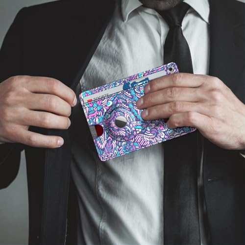 SITHON Slim Minimalist Front Pocket Wallet with Built-in Case Holder Compatible with Airtag, RFID Blocking Credit Card Holder with ID Window Wallet Case Cases for Men Women, Paisley Purple 4