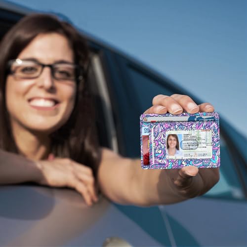 SITHON Slim Minimalist Front Pocket Wallet with Built-in Case Holder Compatible with Airtag, RFID Blocking Credit Card Holder with ID Window Wallet Case Cases for Men Women, Paisley Purple 5