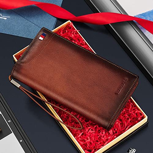 HOT ! VANNANBA Long Wallets for Men with Zip Coin Pocket-RFID Blocking-Gift Package,Bifold Leather Credit Card Wallet(Brown)