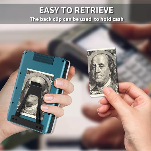 Ultra-Thin Aluminum Mens Wallet with RFID Blocking, Slim Minimalist Wallet for Men with Money Clip Card Wallet with ID Holder, Blue 7
