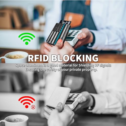 HOT ! Slim Wallet for Men, Pop Up Card Holder RFID Blocking Metal Wallet American Flag 02 Design Holds Up to 9 Cards, Pop Up wallet for Notes and Coins and Debit Cards