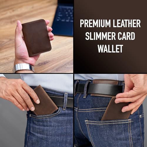 Awesometik Ultra Slim Vertical Card Holder Unisex Wallet. Full Grain 100% Leather. Mens & Women Slim Wallet, Minimalist Thin Front Pocket Leather Credit (Brown) 5